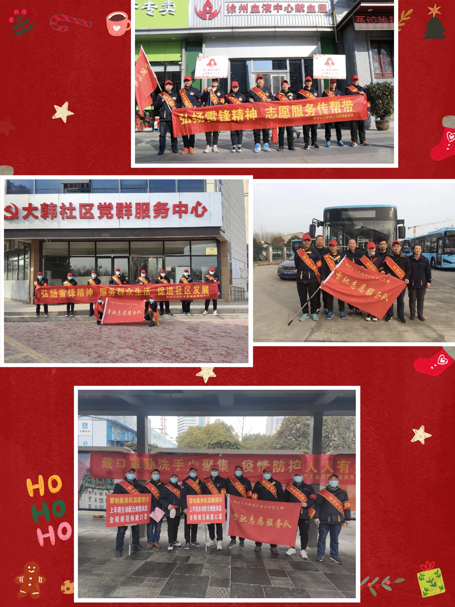 在這一年中,雷馳平安志愿服務(wù)隊(duì)秉承“弘揚(yáng)雷鋒精神,秉持志愿服務(wù),傳承紅色文化”的精神,開展了形式多樣的志愿服務(wù):農(nóng)歷年春節(jié)前走進(jìn)社區(qū)寫春聯(lián)送溫暖;新冠病毒反復(fù)重卷而來,隊(duì)員們多次組織活動宣傳疫情注意事項(xiàng),在不到一個月的時間內(nèi),三次協(xié)助社區(qū)和學(xué)校開展核酸采樣活動;賈汪馬莊村志愿服務(wù);雷鋒日走進(jìn)獻(xiàn)血屋愛心獻(xiàn)血;炎炎夏日服務(wù)中高考學(xué)子;打掃車場衛(wèi)生;到市區(qū)大站站臺服務(wù)乘客;節(jié)日去大龍湖保護(hù)環(huán)境服務(wù)游客;在徐州馬拉松比賽現(xiàn)場,為來徐的全國運(yùn)動員提供友情服務(wù);快遞站幫扶快遞小哥;河南汛情之后迅速組織隊(duì)員,進(jìn)行防洪避災(zāi)知識宣傳;值五一勞動節(jié)帶著孩子們一起為環(huán)衛(wèi)工人送溫暖;七一前夕,組織黨員和隊(duì)友走進(jìn)站臺、車廂和火車站人流量大的地方,宣傳黨的歷史讓大家汲取前進(jìn)的力量;在9.9公益日向社會愛心人士籌善款為公益事業(yè)添磚加瓦;接近年底組織防詐反詐宣傳,讓市民朋友們守護(hù)好自己的錢袋子等等很多活動。