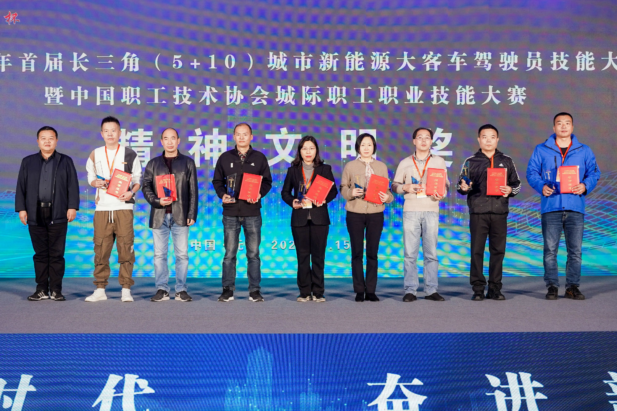 11月16日,2022年首屆長三角(5+10)城市新能源大客車駕駛員技能大賽在無錫完美收官。徐州公交集團黨委副書記、紀委書記、工會主席竇同銀帶領(lǐng)由集團駕駛員組成的徐州市代表隊參加此次競賽,并榮獲了團體精神文明獎,駕駛員段世望、秦浩分別獲三等獎的好成績。