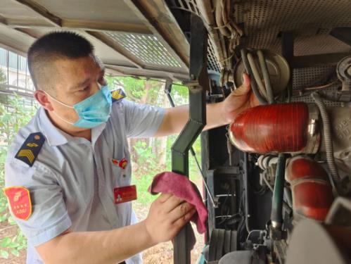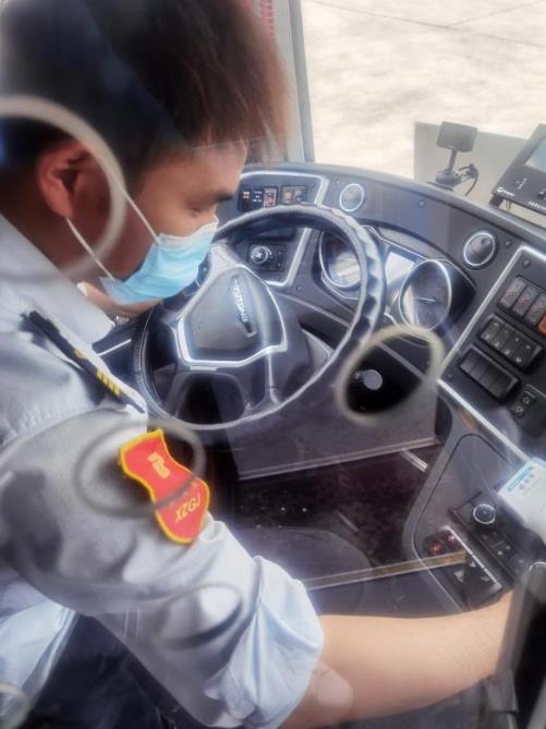 新區(qū)公司1780車駕駛員白延奇駕駛的19路線,由銅山新區(qū)總站發(fā)往徐州火車站,全程接近30.5公里,途徑居民區(qū)、學校眾多,每天要跑3趟,6個單程,不堵車的時候一個單程需要一個小時。“由于工作的特殊性,即便天氣再熱我們也不敢多喝水,早晚高峰堵車至少得1個多小時才能回到主站,只有到終點站才能多喝幾口水,抓緊時間上個廁所?!?/span>駕駛員白延奇這樣說道。為了給市民乘客提供溫馨、舒適的車廂環(huán)境,每天朝陽還未升起,白延奇就到達停車場,檢查車輛狀況、擦拭發(fā)動機、刷洗輪胎、打掃車輛衛(wèi)生,在確?!拔鍍粢涣痢钡耐瑫r,對車廂進行全面消毒,不一會,白延奇的額頭就布滿了汗珠,身上的行業(yè)服早已濕透,緊緊地貼在皮膚上。