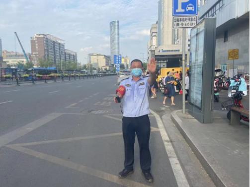 工作時(shí),王軍全神貫注,每天準(zhǔn)時(shí)守候在公交站臺(tái),竭盡全力服務(wù)好每一位乘客。下午4、5點(diǎn)的站臺(tái)上,一股股熱浪從路面騰起,炙熱的陽(yáng)光照在身上猶如蒸籠一般,站臺(tái)上的王軍仍堅(jiān)持仔細(xì)檢查每一位乘客的“兩碼”。