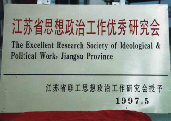 1997年5月,江蘇省職工思想政治工作研究會(huì)授予我公司“江蘇省思想政治工作優(yōu)秀研究會(huì)”稱(chēng)號(hào)。
