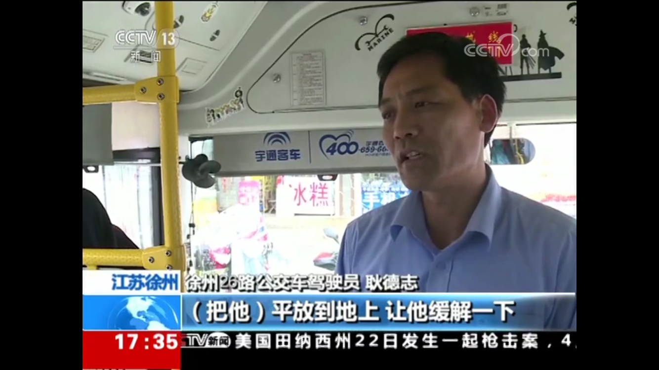 4月20日下午4點(diǎn)58分,26路自編號5025車從徐州開往賈汪途中,一名坐在車中間座位上的男乘客突然倒在了旁邊乘客身上,口吐白沫,渾身抽搐打著哆嗦,情況十分危急。乘務(wù)員昝昱安和周圍乘客立即上前查看,駕駛員耿德志也急忙停下車趕來。