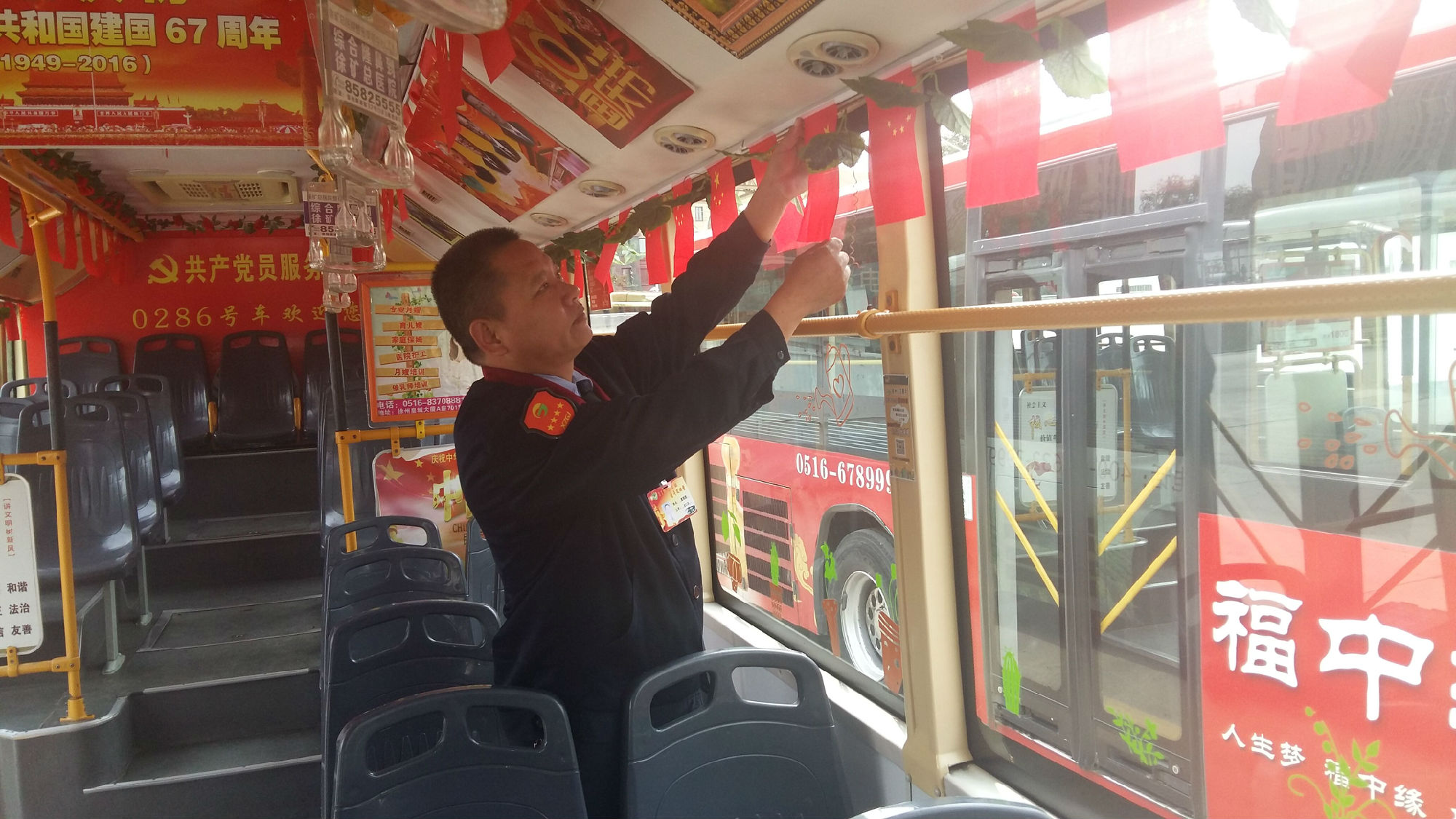 公交駕駛工作平凡、枯燥,但曹瑞國愛動腦、喜創(chuàng)新,總會給乘客不一樣的驚喜,感受不一樣的出行服務。適逢節(jié)日、活動,他總會換著花樣地自掏腰包,給車上乘客一個驚喜:春節(jié),購置小紅燈籠掛滿整個車廂,給乘客帶來濃濃的年味;母親節(jié),他準備了100支康乃馨、祝???,送給“媽媽級”女乘客,道上一聲由衷的問候;今年七一,為慶祝建黨95周年,他準備了95面黨旗,95本黨章,以及黨徽、紀念章給乘客,并在車廂廣播入黨宣言、革命紅歌;9月22日宣傳世界無車日,他制作了10個卡通宣傳牌,加班安裝在車廂四周,號召市民選用綠色交通工具出行,減少城市污染;十一,他將一百面國旗掛在車廂內(nèi),被媒體稱為“國旗哥”;10月9日重陽節(jié),為老年乘客發(fā)放免費鞋墊……