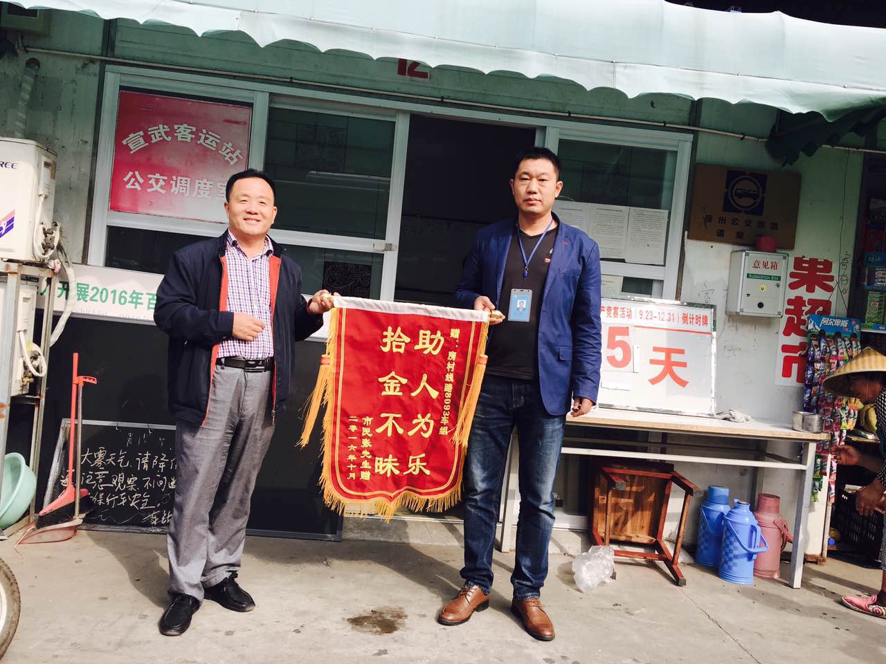 83路附線乘務員侯閃閃拾到1800元現(xiàn)金歸還——10月6日上午,83附線路乘務員侯閃閃撿到一個裝有棉衣的手提袋,經(jīng)檢查棉衣口袋中有現(xiàn)金1800元。侯閃閃將物品交到調(diào)度室保管,經(jīng)過車站多方聯(lián)系,失主張先生于次日上午來到公交宣武車站調(diào)度室將失物領(lǐng)回,并送來錦旗表示感謝。