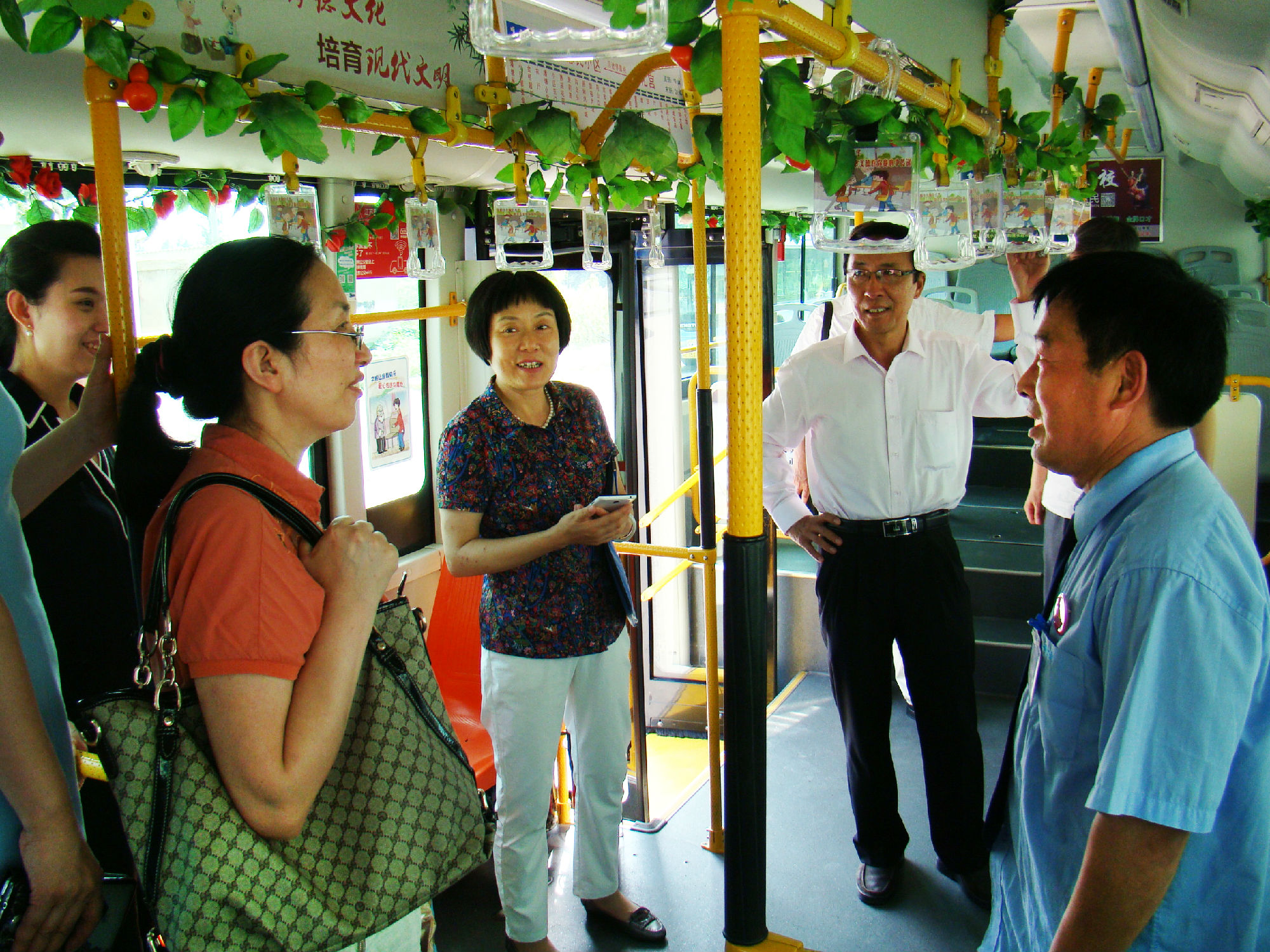 為有效提高老年人乘車(chē)安全系數(shù),公司為14路線在車(chē)廂內(nèi)設(shè)置“老幼病殘?jiān)小睈?ài)心專(zhuān)座的基礎(chǔ)上,專(zhuān)門(mén)設(shè)置了“敬老專(zhuān)座”; 為了給老年乘客提供優(yōu)美的乘車(chē)環(huán)境,還在車(chē)廂的頂部和前部放置各種綠色植物和鮮花,同時(shí),在駕駛座后面安裝了便民袋,配備常用藥物、老花鏡、針線包、意見(jiàn)簿及公交乘車(chē)指南、報(bào)紙、老年人專(zhuān)用雨披等物,讓老年乘客登上公交車(chē),就能感受到清新氣息。