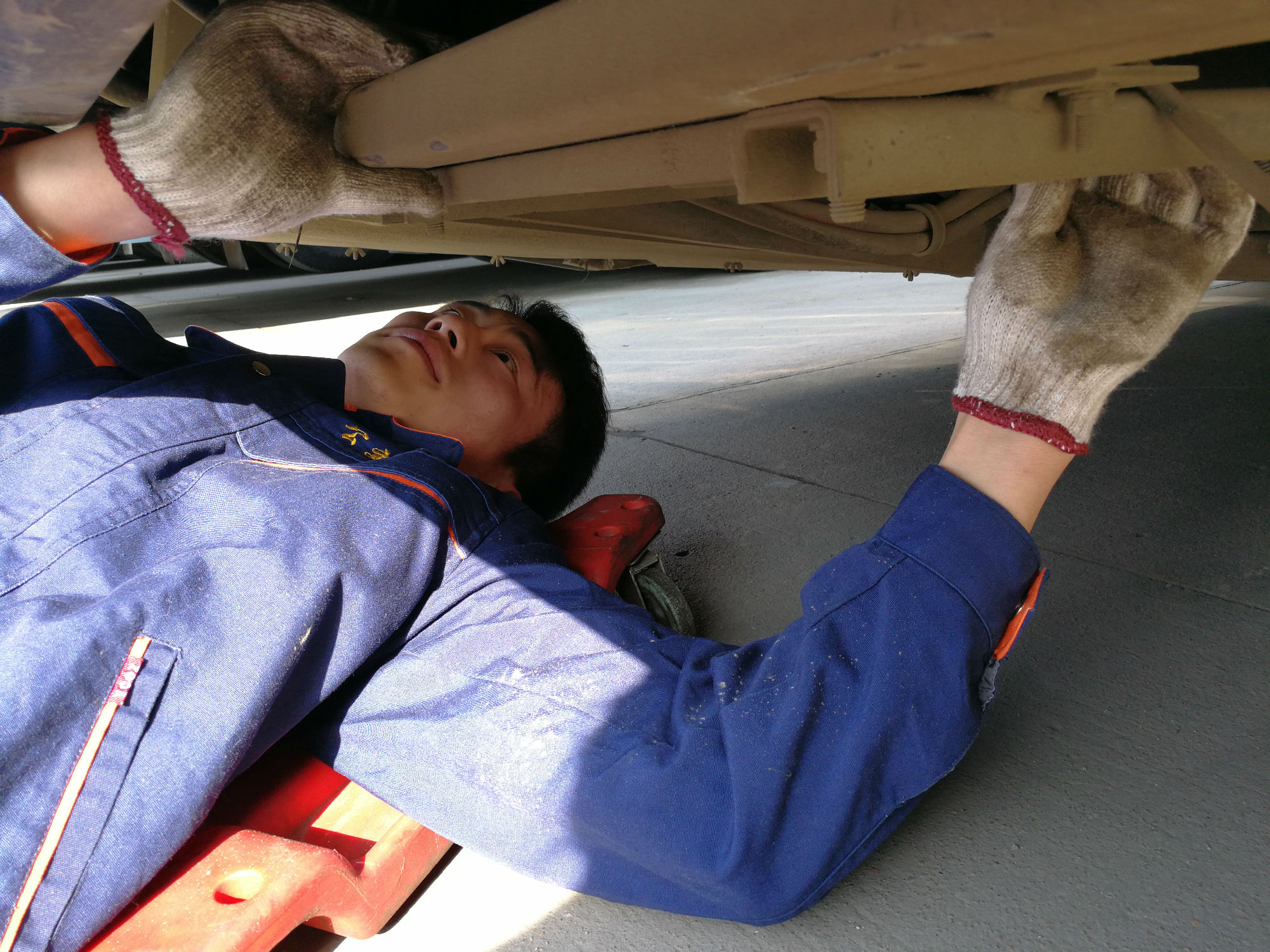 冬日的風(fēng)帶著刺骨的寒意,建北車場(chǎng)一派忙碌,修理工趙祥增早早地來(lái)到車場(chǎng),仔細(xì)地協(xié)助駕駛員檢查每一輛車,確保車輛安全準(zhǔn)點(diǎn)發(fā)車?!摆w師傅,我的車又打不著火了,您來(lái)看看?!壁w祥增聽到后立即檢查維修,10分鐘后,車輛修好恢復(fù)運(yùn)營(yíng)。在寒風(fēng)中忙碌了一上午的他剛剛坐下吃飯,忽然接到電話,一輛車在路上出了故障,他立即放下碗筷,第一時(shí)間趕到現(xiàn)場(chǎng),沒有地溝,他就直接躺在地上維修,隔著棉衣仍能感受到地面?zhèn)鱽?lái)的刺骨寒意,一個(gè)小時(shí)過(guò)去了,背上的汗水濕了干干了濕,手也凍僵了。最后,車子終于修好了,趙祥增從車下爬出來(lái),他的衣服沾滿了油污,衣服也濕透了,但是,臉上留下了開心的笑容。
