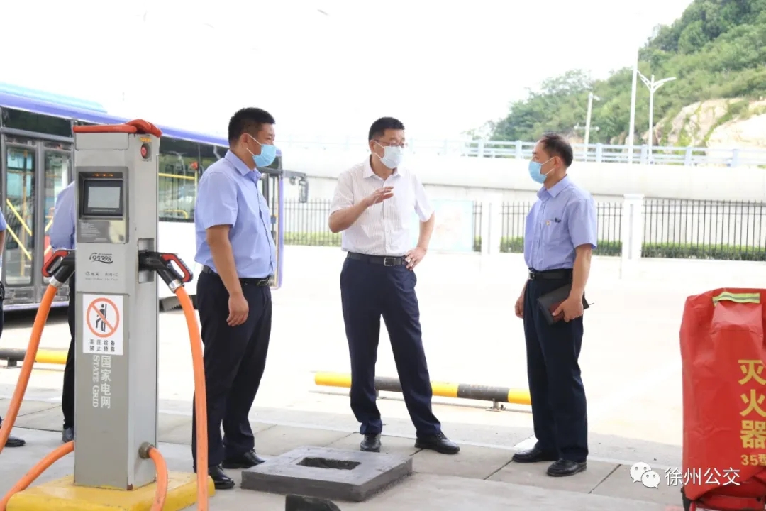 賈泉涌等一行先后來(lái)到徐州東站的停保場(chǎng)、充電站、始發(fā)站等處現(xiàn)場(chǎng)查看調(diào)研,認(rèn)真聽取了車輛充電用電、場(chǎng)站建設(shè)、線網(wǎng)規(guī)劃等相關(guān)工作情況的匯報(bào)。